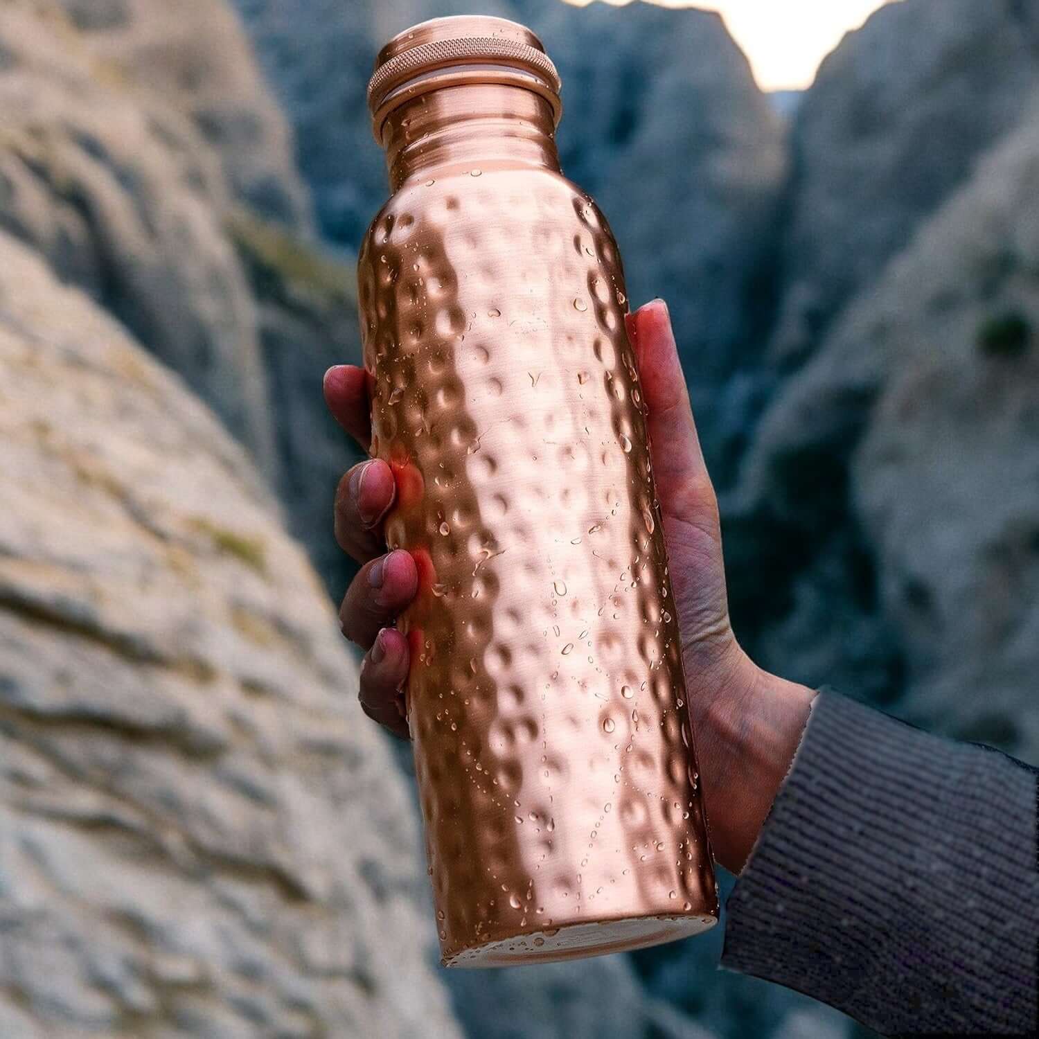Embrace a healthier lifestyle and timeless design—carry your water the natural way with this elegant hammered copper bottle.